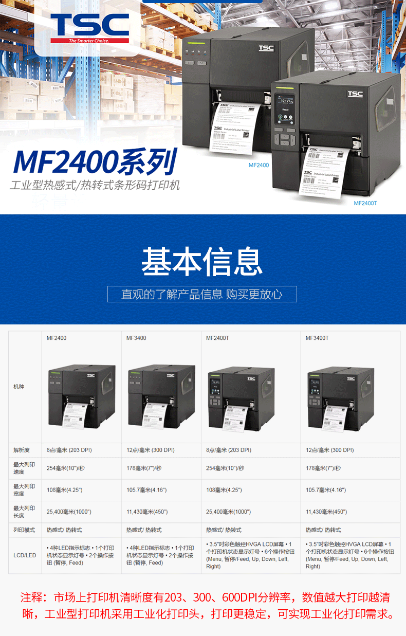 TSC有30多個系列,近百個機型的專業(yè)條形碼打印產(chǎn)品,種類涉及桌面型、工業(yè)型、便攜型、列印模組以及彩色打印,是目前所有品牌中產(chǎn)品較為齊全的制造廠商,可滿足各種行業(yè)的使用需求。